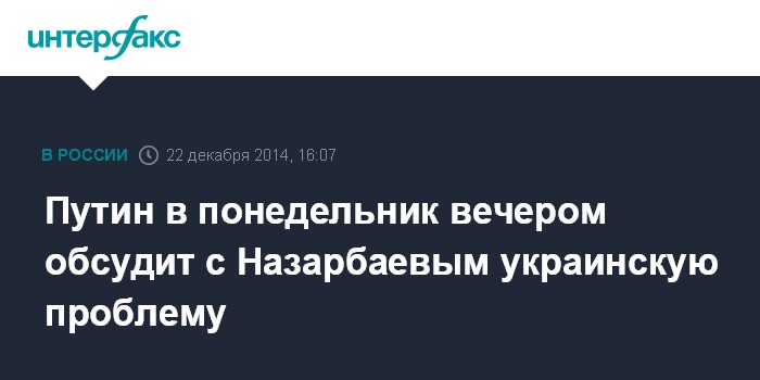 "В ходе сегодняшней встречи планируется обсудить целый ряд вопросов двустороннего сотрудничества, актуальные международные проблемы, естественно, включая ситуацию на Украине. Это вполне логично, учитывая, что президент Казахстана Нурсултан Назарбаев только что вернулся из Киева, а также в связи с тем, что сегодня вечером состоится очередной телефонный разговор президента Владимира Путина с главами государств Франции, Германии и Украины", - сообщил Ушаков журналистам на брифинге в понедельник.