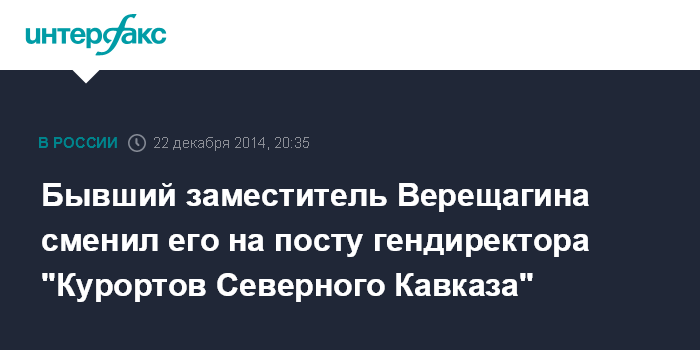 Бывший заместитель Верещагина сменил его на посту гендиректора "Курортов Северного Кавказа"