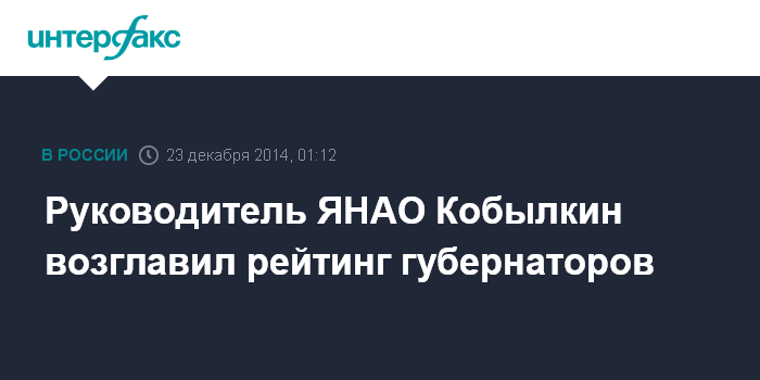 Москва. 23 декабря. INTERFAX.RU - По данным исследования Фонда развития гражданского общества (ФоРГО), представленным в итоговом выпуске рейтинга эффективности губернаторов, самым эффективным из глав российских регионов признан губернатор ЯНАО Дмитрий Кобылкин.