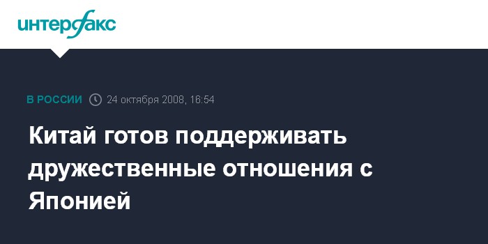 Пекин. 24 октября. INTERFAX.RU - Китайское руководство намерено продолжать политику по поддержанию дружественных отношений между Китаем и Японией, говорится в заявлении премьера Госсовета КНР Вэнь Цзябао, опубликованном на официальном веб-сайте МИД КНР.