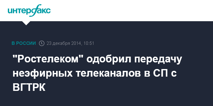 "Ростелеком" одобрил передачу неэфирных телеканалов в СП с ВГТРК