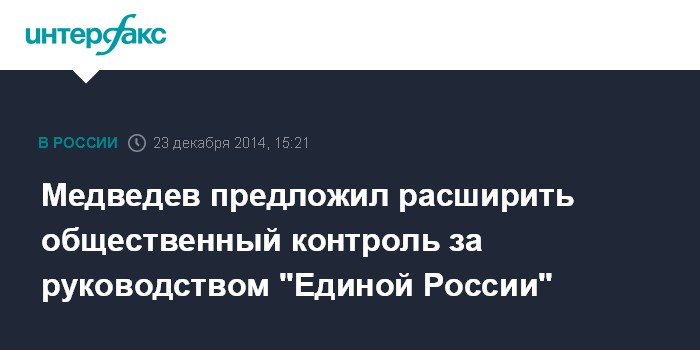 Москва. 23 декабря. INTERFAX.RU - Председатель партии "Единая Россия", премьер-министр Дмитрий Медведев считает необходимым усилить общественный контроль за крупными государственными чиновниками, являющимися членами партии.