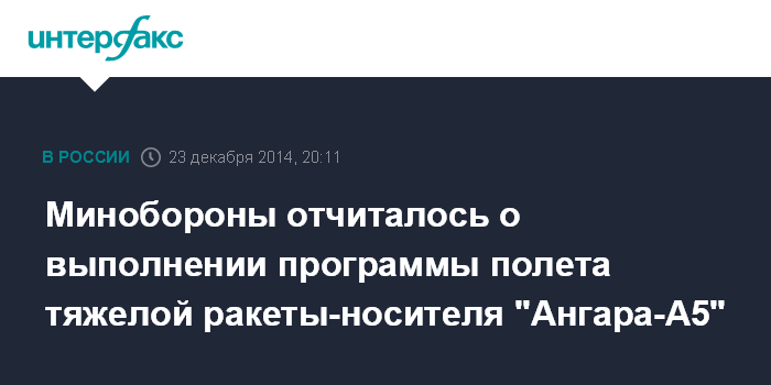 Минобороны отчиталось о выполнении программы полета тяжелой ракеты-носителя "Ангара-А5"