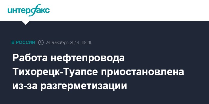 Москва. 24 декабря. INTERFAX.RU - Работа нефтепровода Тихорецк-Туапсе приостановлена из-за разгерметизации в Туапсинском районе Краснодарского края, сообщили "Интерфаксу" в пресс-службе ГУ МЧС по региону.