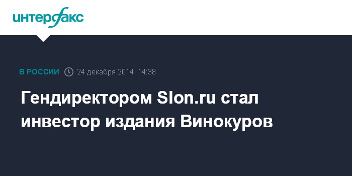 Москва. 24 декабря. INTERFAX.RU - Инвестор телеканала "Дождь", интернет-журналов Slon.ru и "Большой город" Александр Винокуров стал гендиректором портала Slon.ru.