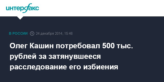 Москва. 24 декабря. INTERFAX.RU - Журналист Олег Кашин требует через суд, чтобы государство возместило ему моральный вред в размере 500 тысяч рублей в связи с затянувшимся расследованием уголовного дела о его избиении.