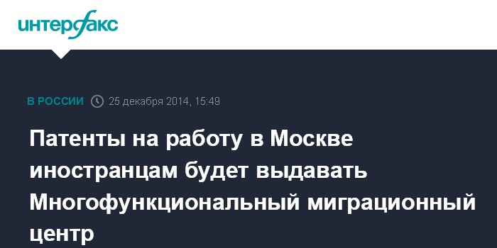 Патенты на работу в Москве иностранцам будет выдавать Многофункциональный миграционный центр