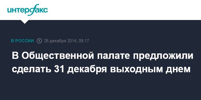 В Общественной палате предложили сделать 31 декабря выходным днем