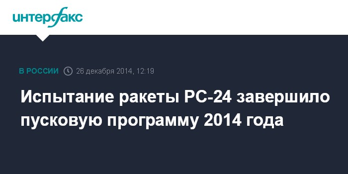 Испытание ракеты РС-24 завершило пусковую программу 2014 года
