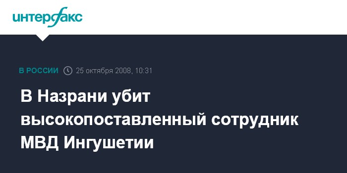 Москва. 25 октября. INTERFAX.RU - В Назрани в субботу расстрелян начальник межрайонного отдела по борьбе с кражами и угоном автотранспорта МВД Ингушетии.
