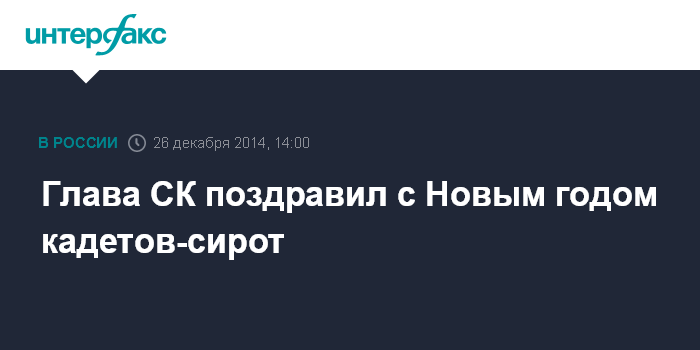 "Сегодня в Следственном комитете состоялся предновогодний прием председателя СКР Александра Бастрыкина кадетов Кадетского корпуса Следственного комитета РФ имени Александра Невского и профильных кадетских классов СКР из числа детей-сирот и детей, оставшихся без попечения родителей, в том числе детей сотрудников комитета, погибших при исполнении служебного долга", - сказал Маркин в пятницу "Интерфаксу".
