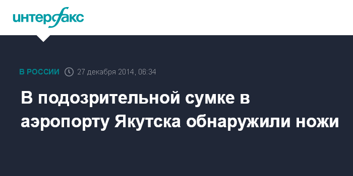 Москва. 27 декабря. INTERFAX.RU - В бесхозной сумке, найденной в камере хранения в аэропорту Якутска, были обнаружены личные вещи, в том числе национальные якутские ножи, сообщает в субботу пресс-служба регионального МВД России.