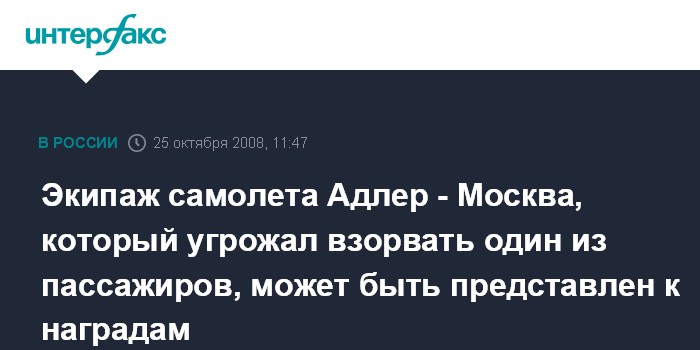 Экипаж самолета Адлер - Москва, который угрожал взорвать один из пассажиров, может быть представлен к наградам