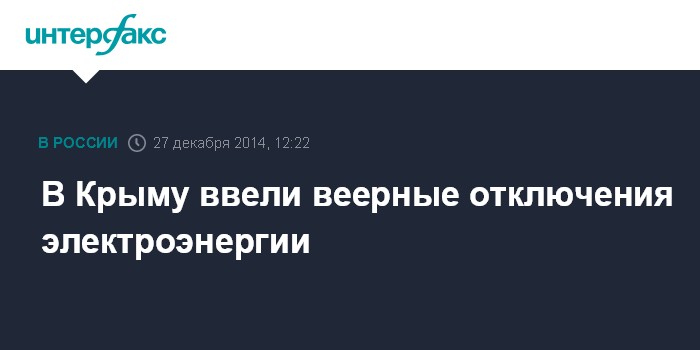 26 декабря была прекращена поставка электроэнергии от объединенной электросети Украины для Крымской электросети. Энергоснабжение Крыма осуществлялось за счет собственной генерации, а социально-значимые объекты, объекты жизнеобеспечения и экономики были подключены к резервным источникам питания. В ночь на субботу в Крыму полностью восстановили энергоснабжение.