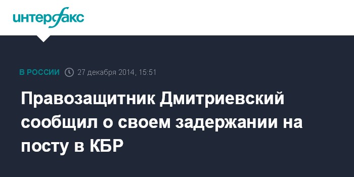 Дмитриевский сообщил "Интерфаксу", что при проверке его паспорта на федеральном посту около совхоза "Урух" КБР сотрудники правоохранительных органов сказали, что он "числится в некой базе как человек, которого следует проверить".