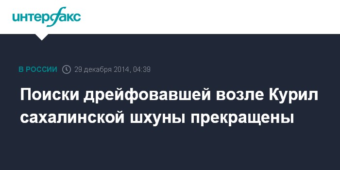 Москва. 29 декабря. INTERFAX.RU -ДАЛЬНИЙ ВОСТОК - Спасатели прекратили поиски сахалинской рыболовецкой шхуны "Атлант", на которой произошел пожар в ночь на 22 декабря. Об этом "Интерфаксу" сообщили в Сахалинском филиале ФБУ "Морспасслужба Росморречфлота" (бывшее СахБАСУ). Людей на судне не было.