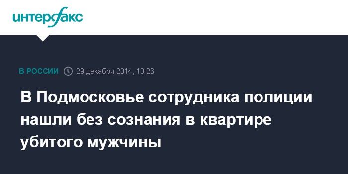 Москва. 29 декабря. INTERFAX.RU - Сотрудник подмосковной полиции обнаружен без сознания рядом с убитым мужчиной в Сергиево-Посадском районе Подмосковья.