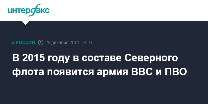 В 2015 году в составе Северного флота появится армия ВВС и ПВО