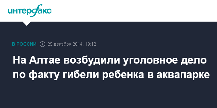 На Алтае возбудили уголовное дело по факту гибели ребенка в аквапарке