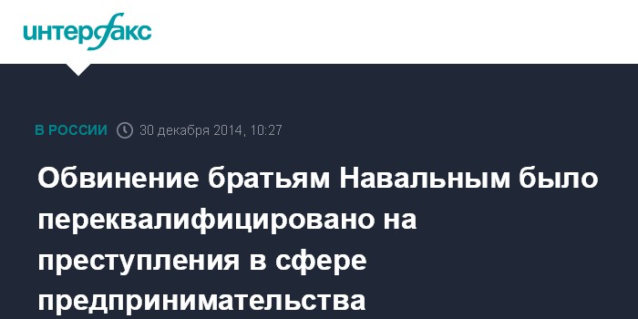 Обвинение братьям Навальным было переквалифицировано на преступления в сфере предпринимательства