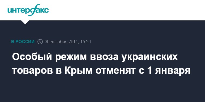Особый режим ввоза товаров с Украины в Крым действовал с момента воссоединения региона с Россией в марте уходящего года. Власти Крыма принимали меры, чтобы не допустить транзит украинских товаров, ввезенных в Крым без пошлин, в другие регионы России.