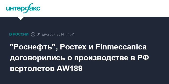 Согласно сообщению "Роснефти", в рамках подписанного документа стороны создадут совместное предприятие на базе подмосковного завода HeliVert - СП холдинга "Вертолеты России" и AgustaWestland (дочерних структур "Ростеха" и Finmeccanica). "Роснефть" станет новым партнером совместного российско-итальянского предприятия.