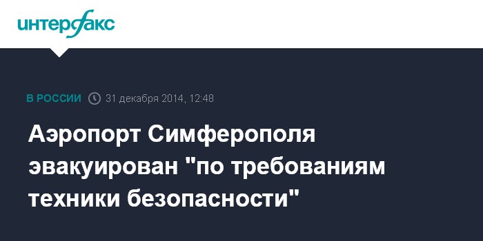 Москва. 31 декабря. INTERFAX.RU - Аэропорт "Симферополь" эвакуирован в среду около 11:00 в соответствии с требованиями техники безопасности, сообщила "Интерфаксу" представитель справочной службы аэропорта.