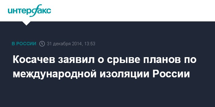 "Благодаря внешнеполитическим усилиям всех ветвей власти страны удалось сорвать планы по международной изоляции страны - а такая изоляция должна была стать самостоятельным средством политического и экономического шантажа в отношении России", - говорится в заявлении Косачева, размещенном на сайте Совета Федерации.