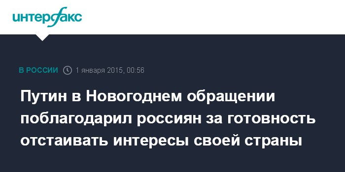 Путин в Новогоднем обращении поблагодарил россиян за готовность отстаивать интересы своей страны