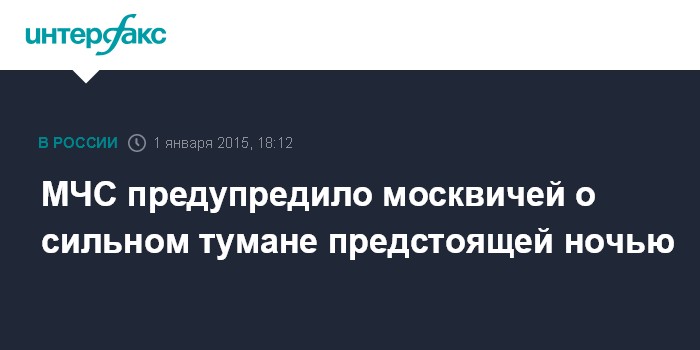 "В период с 18 часов 00 минут 01 января 2015 года до 05 часов 00 минут 02 января 2015 года в Москве в пределах МКАД и ТиНАО и в Московской области ожидается местами туман. Видимость в тумане 300-500 метров", - говорится в сообщении.
