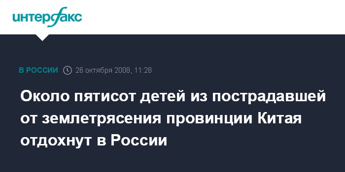 Москва. 26 октября. INTERFAX.RU - Россия подтверждает готовность принять в 2009 году еще одну группу детей из пострадавших от разрушительных землетрясений районов Китая, заявил в воскресенье на заседании российско-китайской межправительственной комиссии по гуманитарному сотрудничеству вице-премьер Александр Жуков.