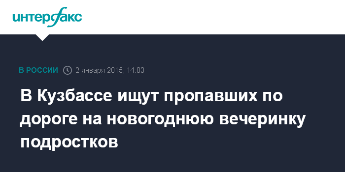 Москва. 2 января. INTERFAX.RU - Двое подростков, отправившиеся на новогоднюю вечеринку к своим знакомым из Новокузнецкого района в город Новокузнецк (Кемеровская область), пропали накануне новогодней ночи, сообщила пресс-служба ГУ МВД России по региону.