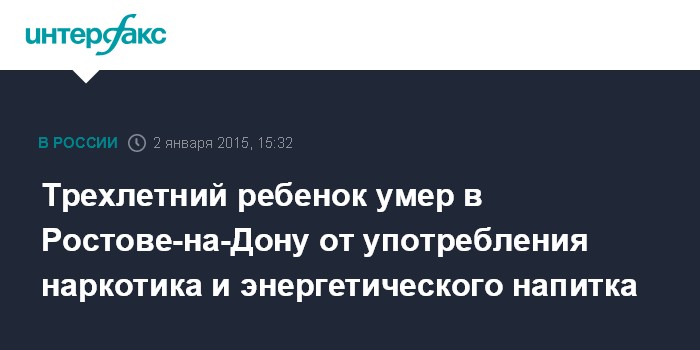 Трехлетний ребенок умер в Ростове-на-Дону от употребления наркотика и энергетического напитка