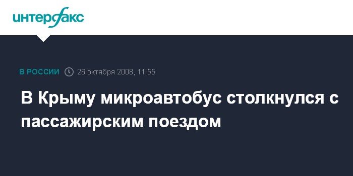 Киев. 26 октября. INTERFAX.RU - В Крыму в результате столкновения микроавтобуса "Опель" с пассажирским поездом "Симферополь - Одесса" на регулируемом железнодорожном переезде один человек погиб, два - травмированы, сообщает пресс-служба Министерства по вопросам чрезвычайных ситуаций в воскресенье.