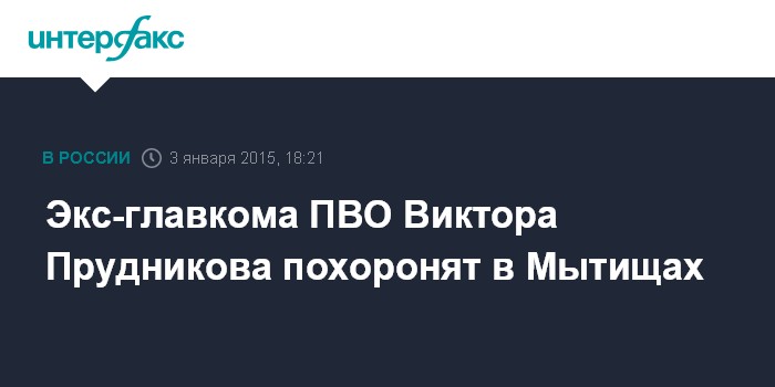 Экс-главкома ПВО Виктора Прудникова похоронят в Мытищах