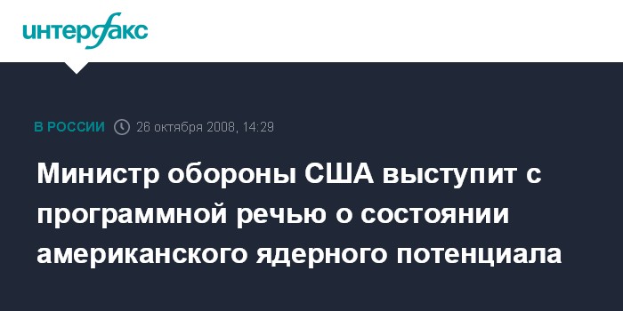 Вашингтон. 26 октября. INTERFAX.RU - Министр обороны США Роберт Гейтс выступит во вторник с программной речью о надежности и будущем американского ядерного потенциала, сообщает источник в Пентагоне.