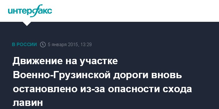В сообщении также говорится, что на 134-135-километровом отрезке этой же дороги (Дарьяльское ущелье) из-за опасности схода лавин запрещается остановка транспорта.