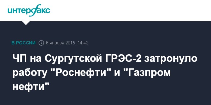 ЧП на Сургутской ГРЭС-2 затронуло работу "Роснефти" и "Газпром нефти"
