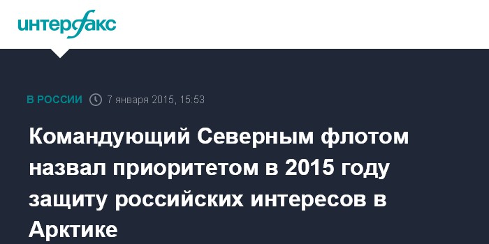 Командующий Северным флотом назвал приоритетом в 2015 году защиту российских интересов в Арктике