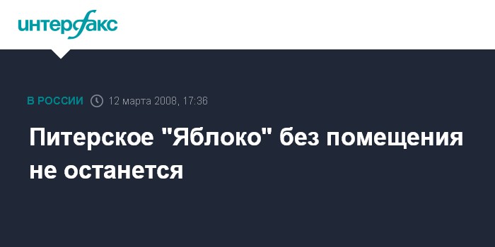 Санкт-Петербург. 12 марта. INTERFAX.RU - Комитет по управлению городским имуществом (КУГИ) Северной Столицы предложит питерскому отделению партии "Яблоко" другое помещение для офиса, сообщила "Интерфаксу" пресс-секретарь комитета Елена Бодрова.