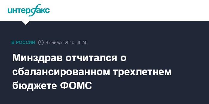 Минздрав отчитался о сбалансированном трехлетнем бюджете ФОМС