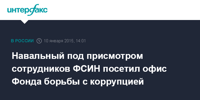 Москва. 10 января. INTERFAX.RU - Оппозиционер Алексей Навальный в сопровождении сотрудников ФСИН прибыл в субботу в офис Фонда борьбы с коррупцией.