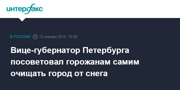 Москва. 12 января. INTERFAX.RU - В ответ на жалобу в социальной сети на плохую уборку снега вице-губернатор Санкт-Петербурга Игорь Албин посоветовал горожанам самим взять лопаты и очищать город от снега.