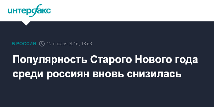 Москва. 12 января. INTERFAX.RU - С каждый годом все меньше жителей России планируют отмечать Старый Новый год: в этот раз только 43% намерены устроить себе праздник в ночь на 14 января, сообщили "Интерфаксу" в "Левада-Центре".