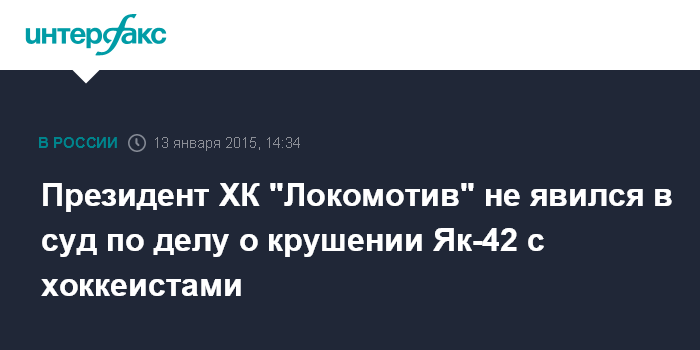 Президент ХК "Локомотив" не явился в суд по делу о крушении Як-42 с хоккеистами