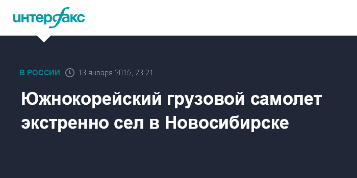 Москва. 13 января. INTERFAX.RU - Грузовой самолет южнокорейской авиакомпании вынужденно сел в Новосибирске из-за задымления кабины, сообщили "Интерфаксу" в Росавиации