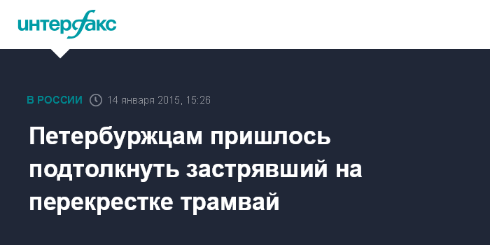 Москва. 14 января. INTERFAX.RU - В интернете опубликовано видео, на котором петербуржцы толкают застрявший на перекрестке трамвай.