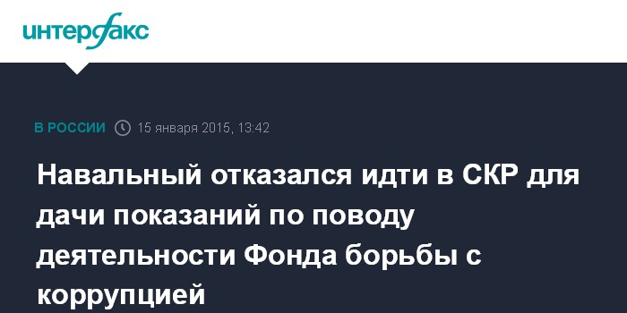 Навальный отказался идти в СКР для дачи показаний по поводу деятельности Фонда борьбы с коррупцией
