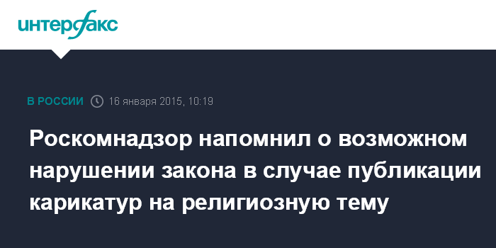 Москва. 16 января. INTERFAX.RU - После теракта против французского журнала Charlie Hebdo, который разместил карикатуру на пророка Мухаммеда, Роскомнадзор выступил с дополнительным разъяснением по поводу возможного появления подобных публикаций в российских СМИ.
