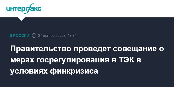 Правительство проведет совещание о мерах госрегулирования в ТЭК в условиях финкризиса